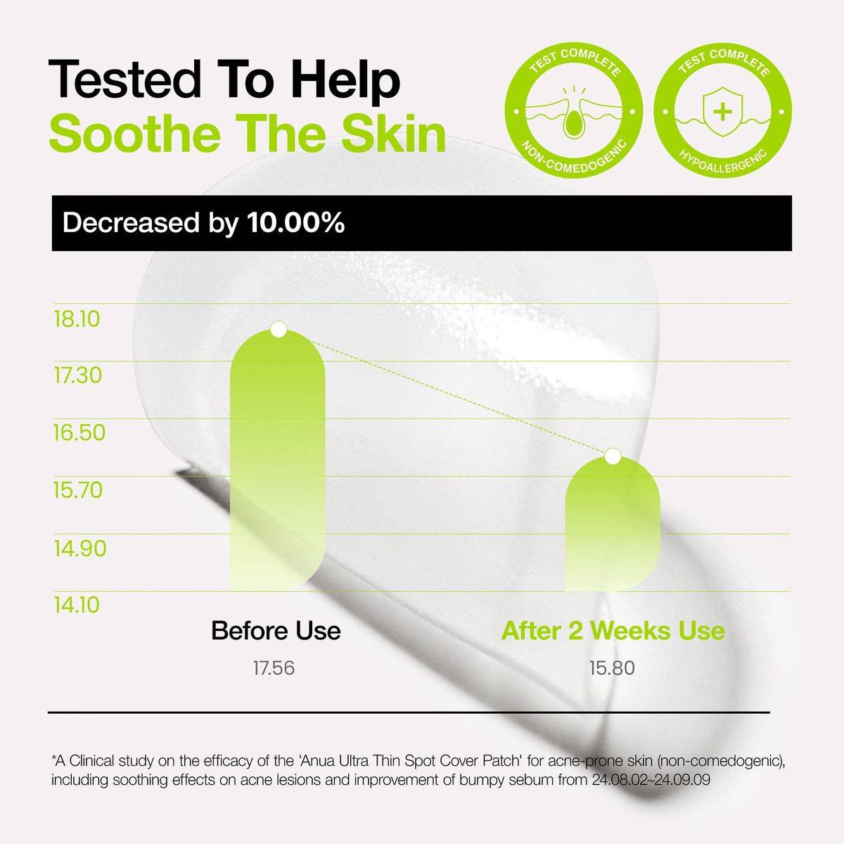 Anua Ultra Thin Spot Cover Patch is designed for acne-prone skin, featuring ultra-thin, invisible hydrocolloid patches that absorb impurities and soothe with Centella Asiatica and Aloe Vera. Hypoallergenic and non-comedogenic, these patches help maintain the skin's moisture barrier with ceramides, making them ideal for daily use.