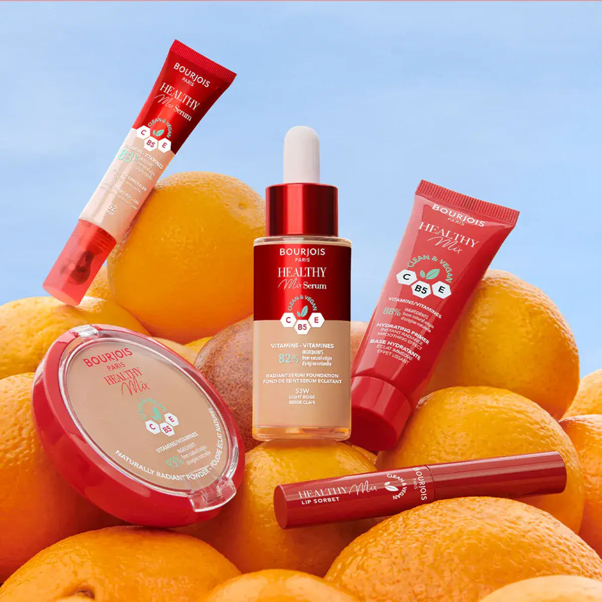 Bourjois Healthy Mix Clean Face Powder offers a naturally radiant, matte finish. Enriched with vitamins C, E, and B5, it nourishes and brightens the skin while camouflaging imperfections. The clean and vegan formula is made with 93% natural origin ingredients, suitable for all skin types. Comes with a mirror and sponge for easy application.