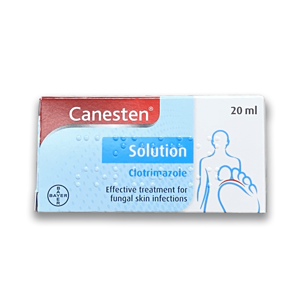 Canesten 1% Solution is an antifungal topical solution designed to treat fungal skin infections. It contains clotrimazole, effective against athlete's foot, ringworm, and more. Suitable for external use, it relieves itching and discomfort.