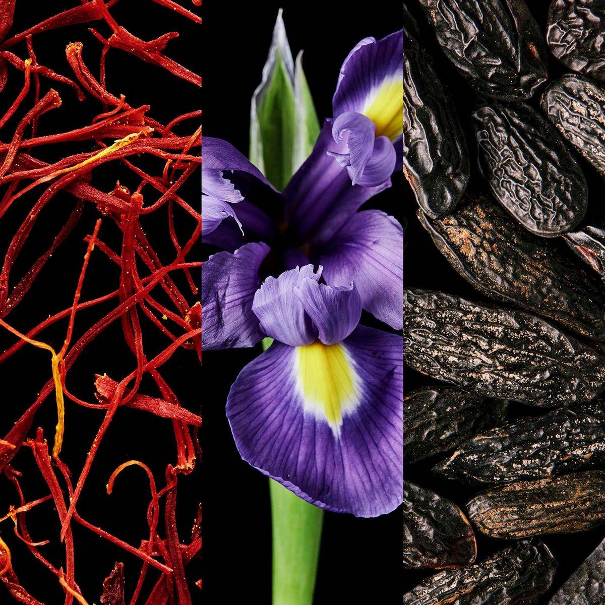 Saffron, Black Currant, Tonka Bean, Iris, Rose, Leather, Vanilla, Guaiac Wood.