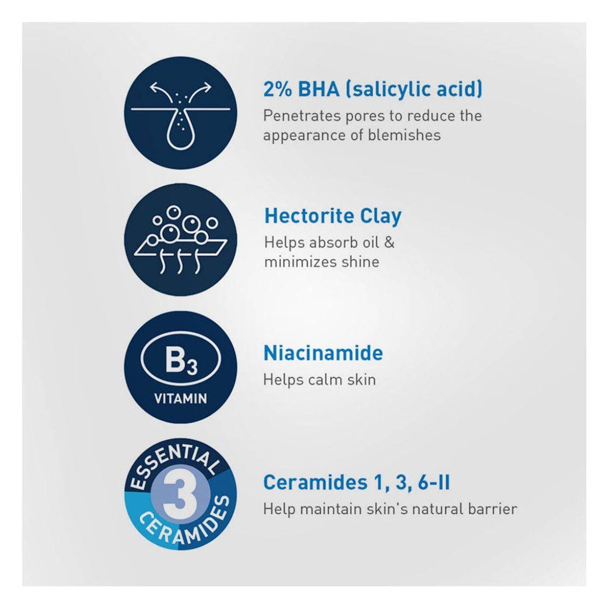 This refreshing gel-to-foam cleanser for blemish-prone skin reduces blemishes and blackheads, removes excess oil, and maintains the skin's natural barrier. Developed with dermatologists, it features essential ceramides, salicylic acid, and niacinamide.