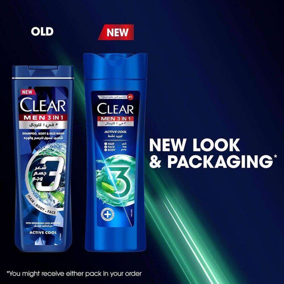 Clear Men Shampoo 3 in 1 Active Cool is designed for deep cleansing and anti-dandruff care. Infused with cooling menthol, it refreshes and moisturizes the scalp and skin. Suitable for daily use on hair, face, and body.