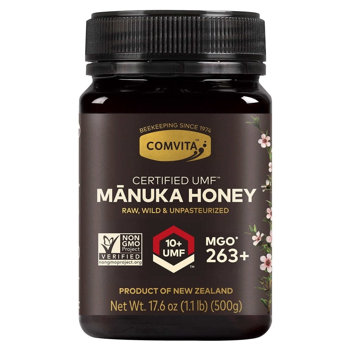 Comvita Manuka Honey UMF 10+ is a premium grade honey sourced from New Zealand's pristine forests. It is raw, wild, unpasteurized, and scientifically proven to contain MGO 263+, supporting immune health.