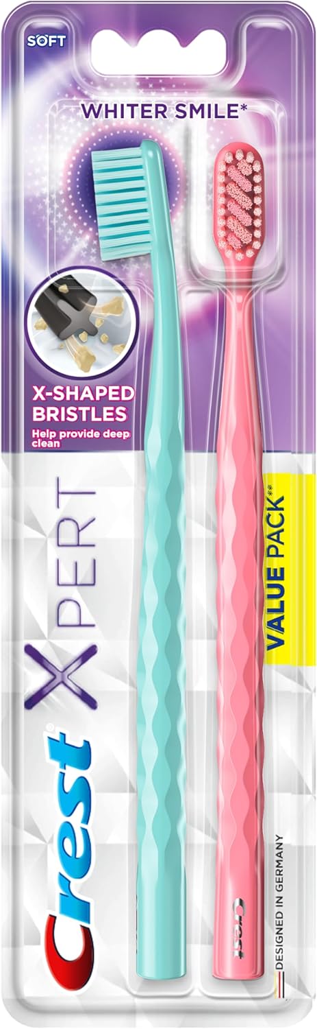 General Info: Manual toothbrush designed to help achieve a brighter smile by removing surface stains. Comes in a 2-pack. Features: Soft bristles for gentle cleaning. Ergonomic handle for comfortable and precise brushing. Bristles often have a polishing cup design.
