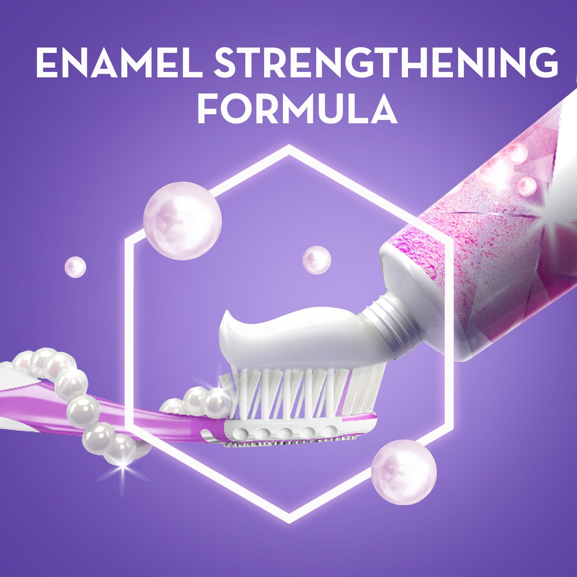 General Info: Whitening toothpaste with the essence of pearl for a brilliant, naturally radiant smile. Features: Whitens by removing surface stains. Contains fluoride for anti-cavity protection.