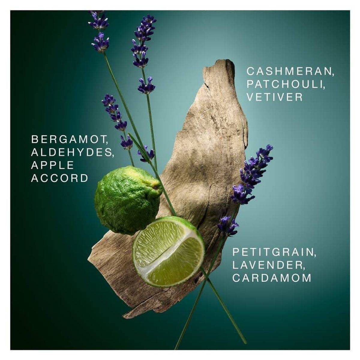 Bergamot, Aldehydes, Apple Accord, Cashmeran, Patchouli, Vetiver, Petitgrain, Lavender, Cardamom, BUTANE-ISOBUTANE-PROPANE, ALCOHOL DENAT., PARFUM/FRAGRANCE.