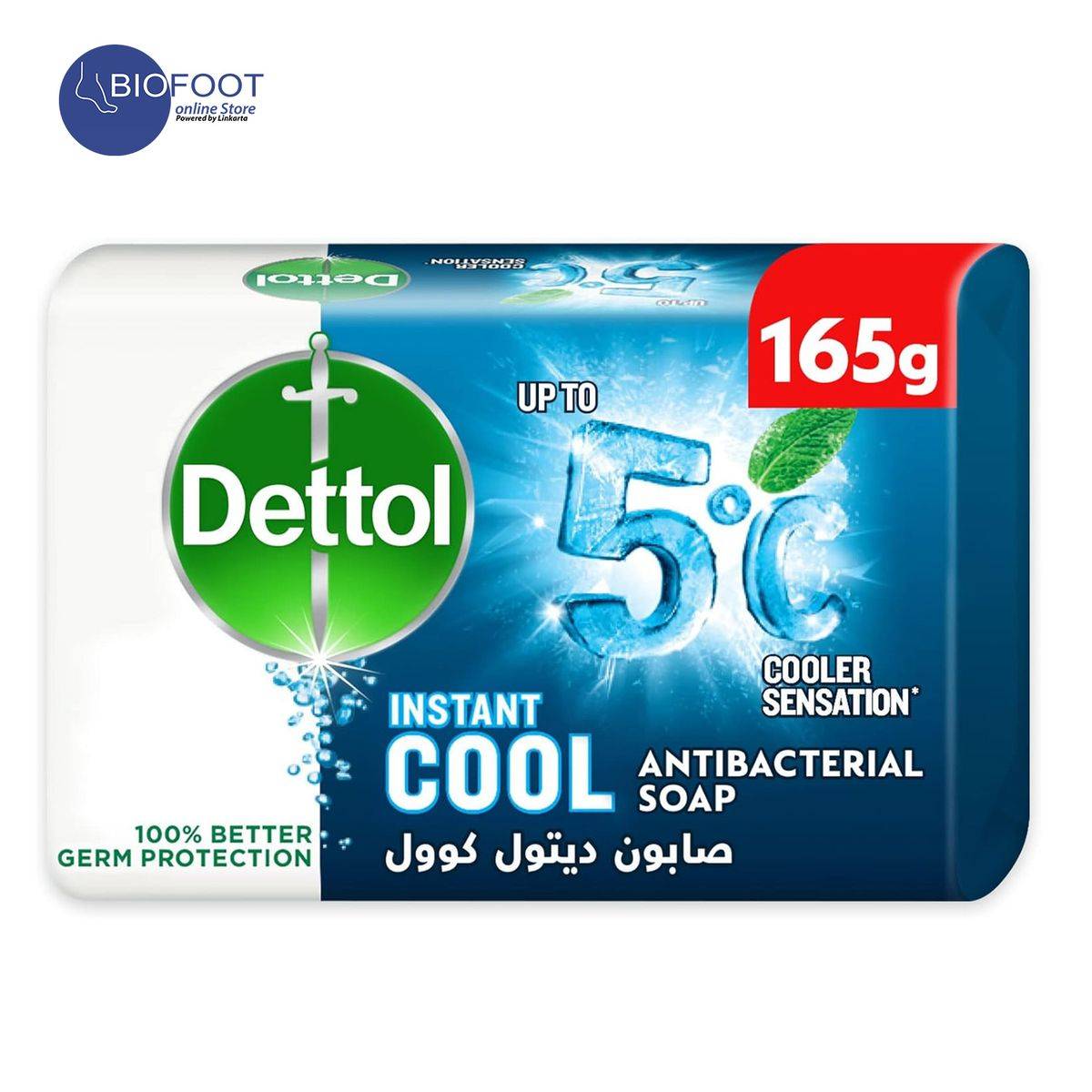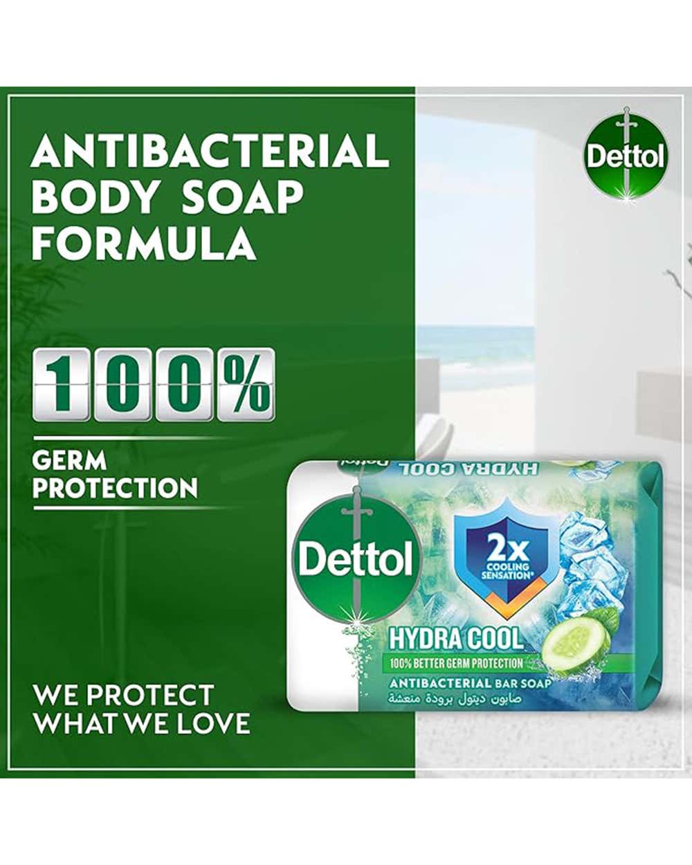 Dettol Antibacterial Bar Soap Cool 165g combines trusted germ protection with menthol freshness. It cleanses, cools, and moisturizes skin, leaving it healthy and refreshed.