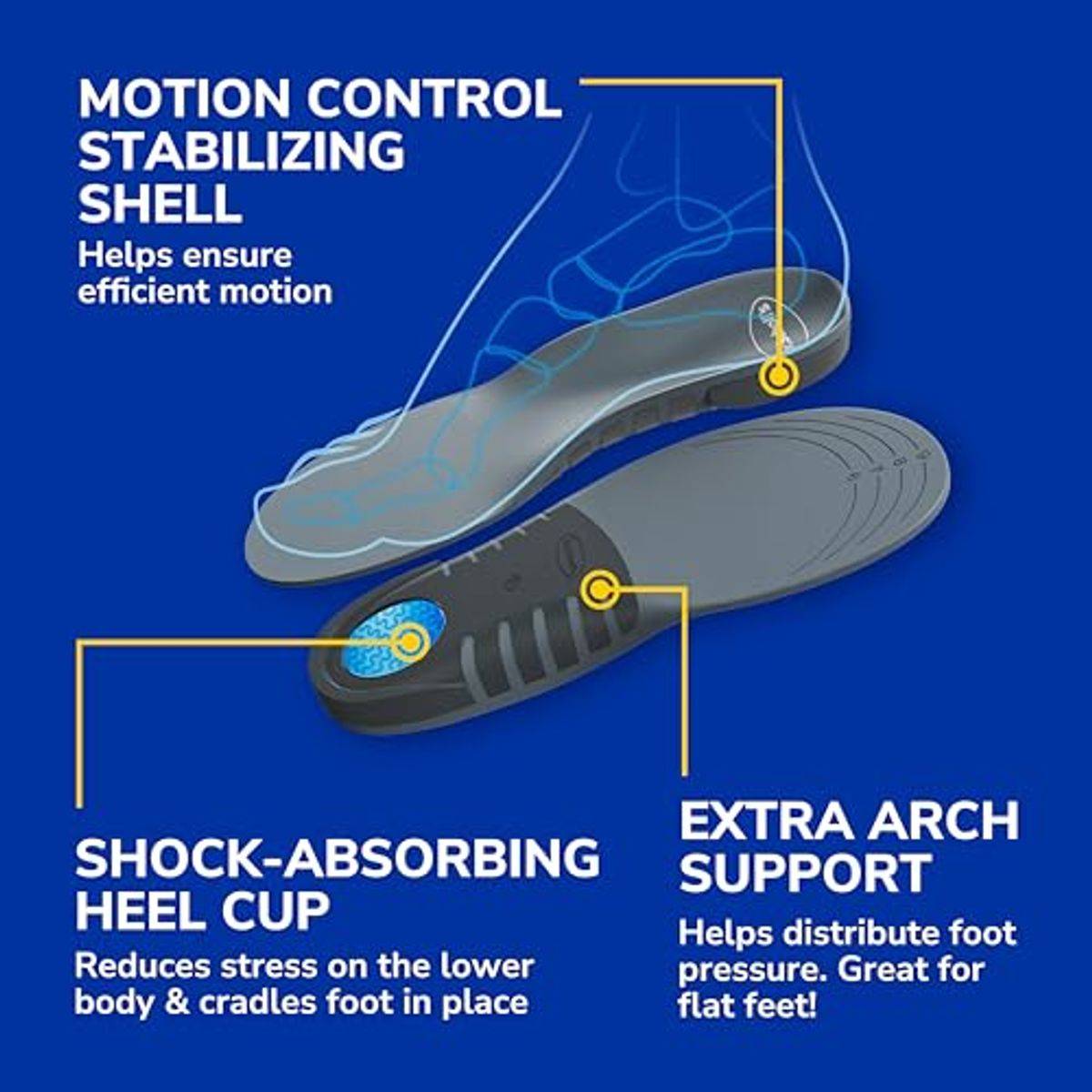 Dr. Scholl's Stability Support Insoles are designed for flat feet and overpronation. They improve stability, balance, and posture, easing pain from foot to lower back. Featuring a Motion Control Stabilizing Shell and Shock-Absorbing Heel Cup, these insoles provide extra arch support and can be trimmed to fit most shoes.