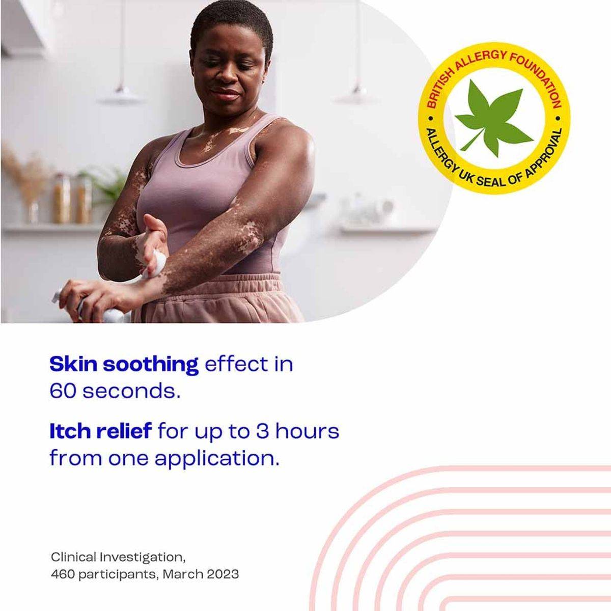 E45 Itch Relief Coolmousse is a face and body foam designed to soothe dry, itchy, and irritated skin. Formulated with Aloe Vera and Betaine, it hydrates and calms the skin. Fast-absorbing and fragrance-free, it provides instant relief and is suitable for the whole family.
