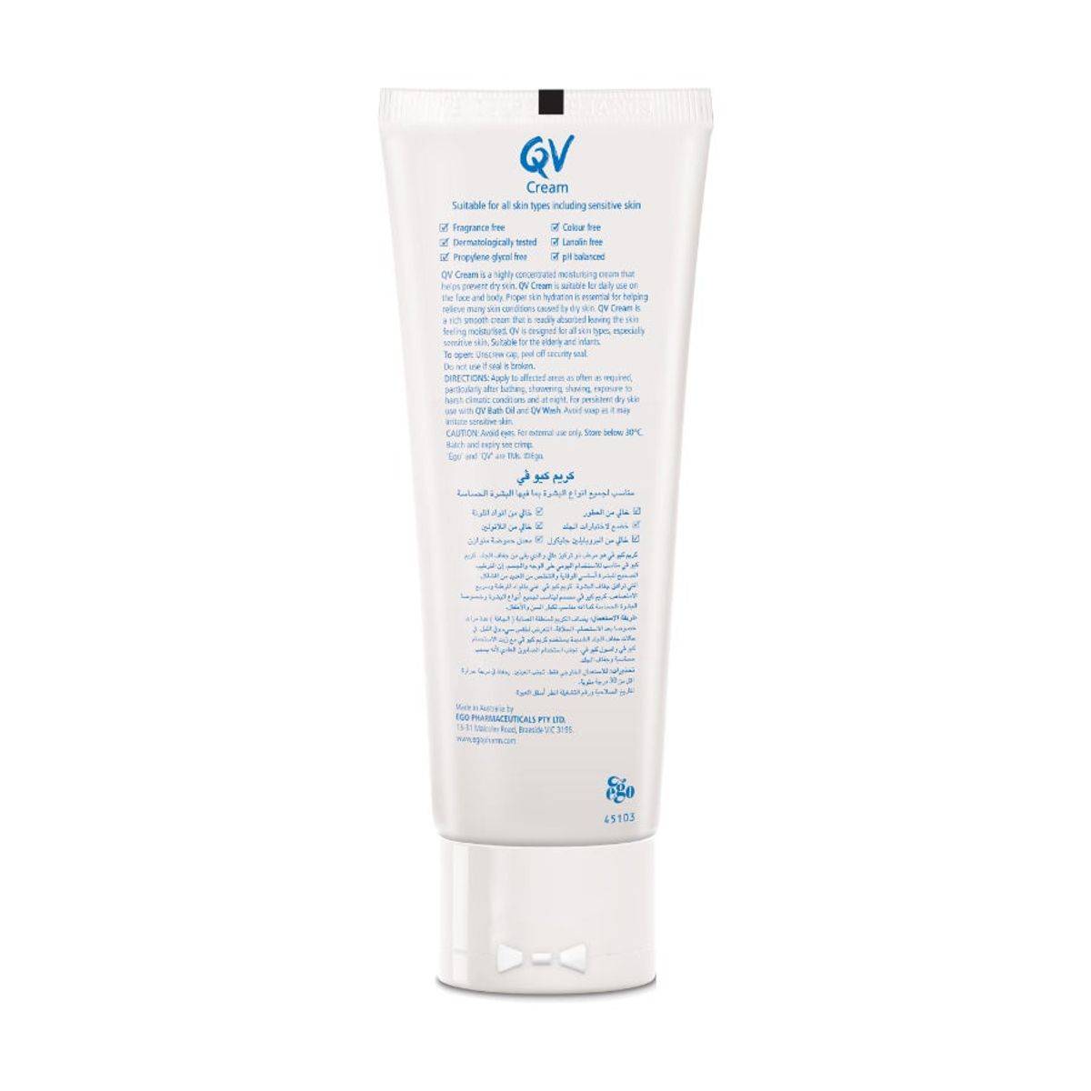 QV Cream is a rich, protective cream designed to replenish and repair dry skin. It contains squalene, a natural component in the skin's oil, and is suitable for dry or sensitive skin, eczema, dermatitis, and psoriasis. Free from perfume, lanolin, and propylene glycol, it helps seal in natural moisture by acting as a protective barrier. Ideal for infants and the elderly.
