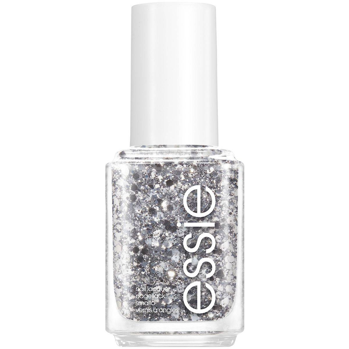 Essie Nail Polish 278 Set In Stones offers a silver glitter with a shimmer finish, providing salon-quality color with a vegan, chip-resistant formula. Perfect for adding sparkle to any look.