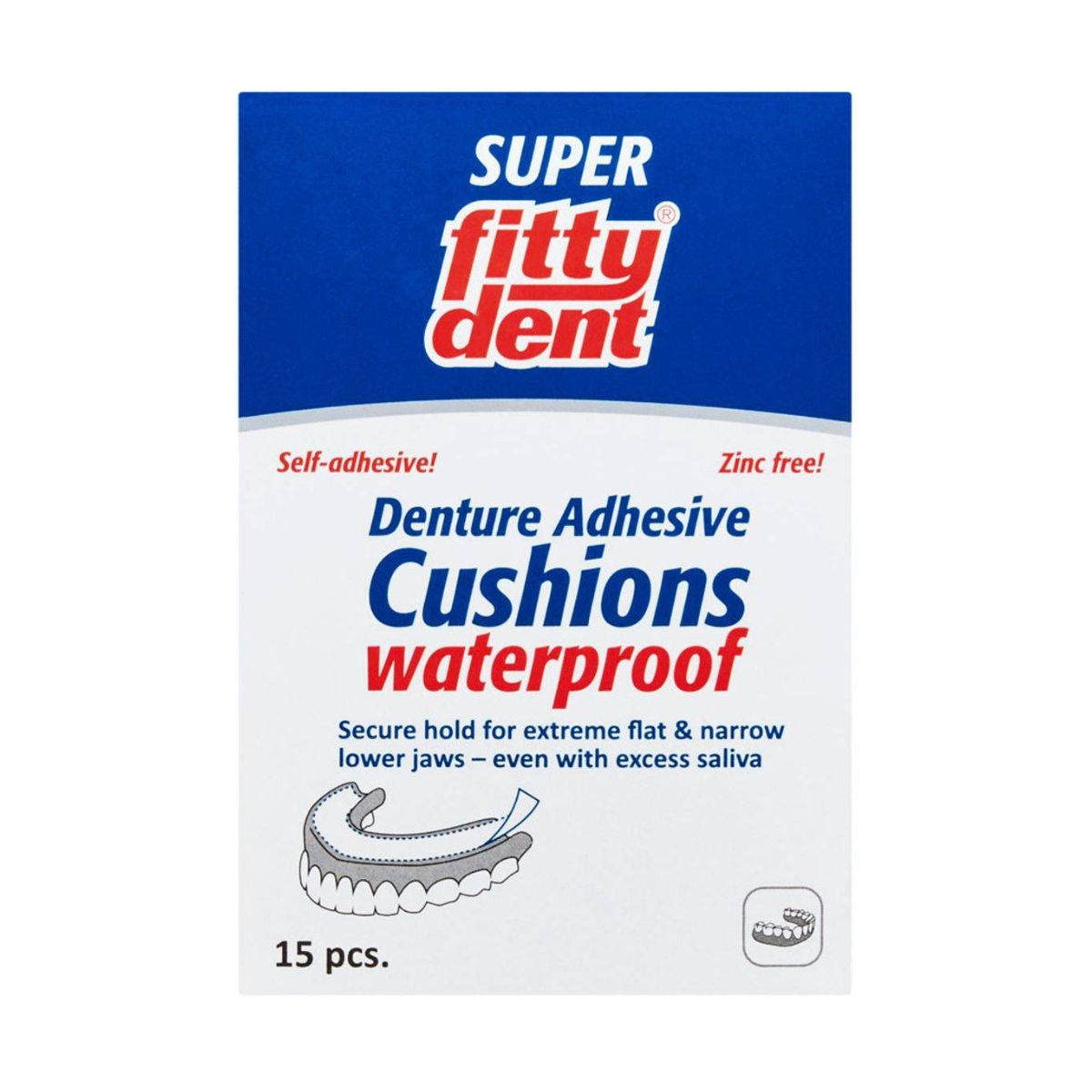Fitty Dent Denture Adhesive Cushions provide a secure bond for lower dentures, ideal for flat and narrow jaws. Waterproof and zinc-free, they offer comfort and reliability even with excess saliva. Easy to use and designed for single use, these cushions ensure a strong hold throughout the day.