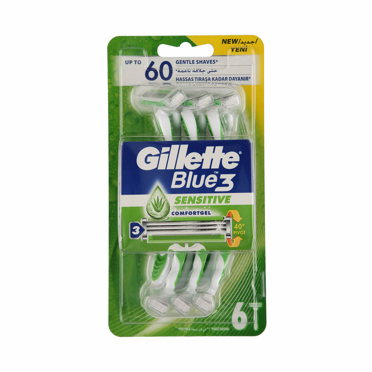 Gillette Blue 3 Sensitive razors provide up to 10 comfortable shaves with a pivoting head and ComfortGel technology for sensitive skin.