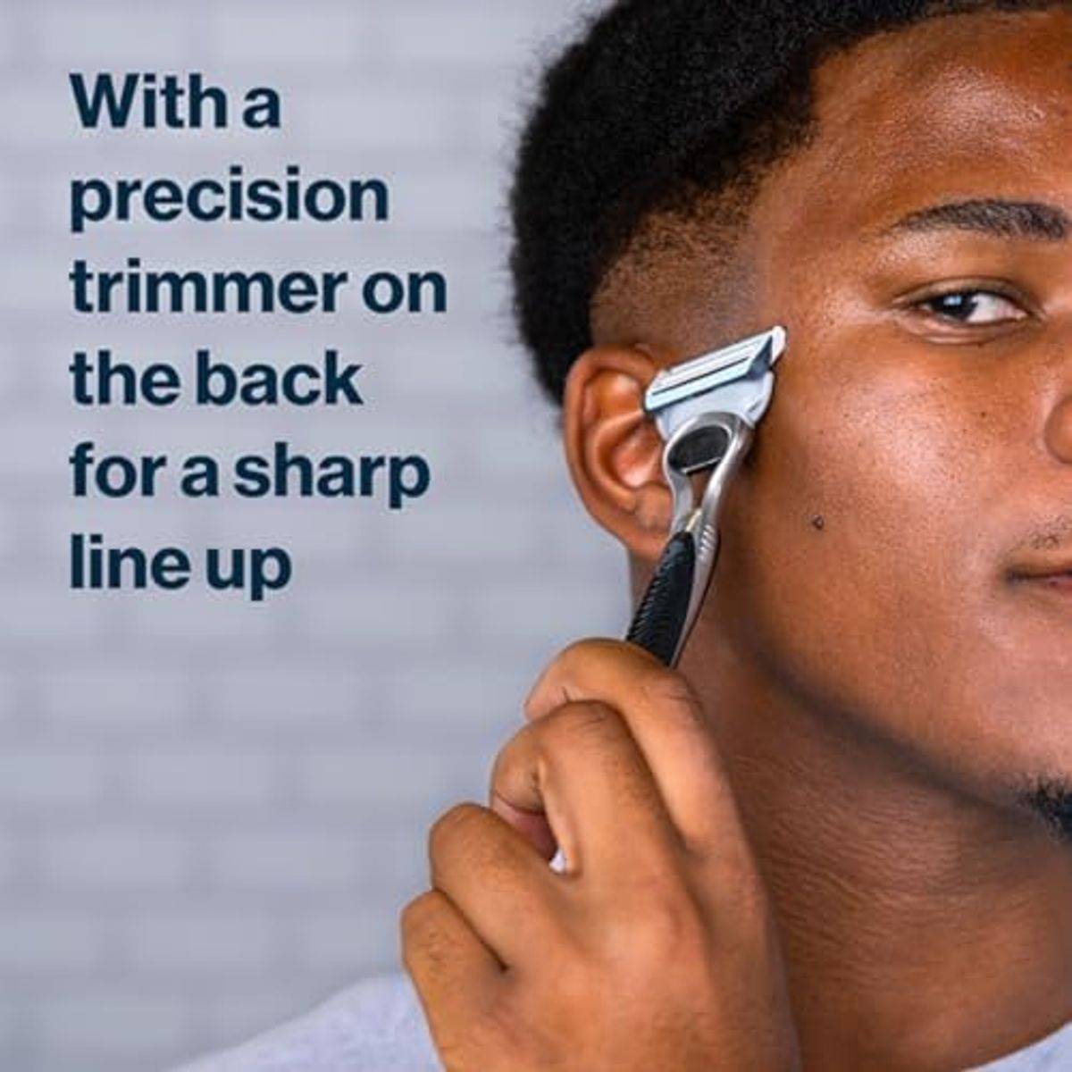 Gillette SkinGuard Razor is designed for men with sensitive skin, featuring patented SkinGuard technology to reduce irritation. It offers a clean, comfortable shave with improved lubrication and a precision blade for sharp line-up.