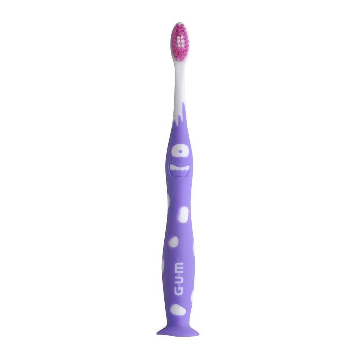 The GUM Junior Monster Toothbrush is designed for children aged 7-9 years. It features soft bristles for gentle plaque removal and a fun design to encourage proper brushing habits. The ergonomic handle and suction cup make it easy to use and store. Ideal for maintaining oral hygiene as permanent teeth develop.