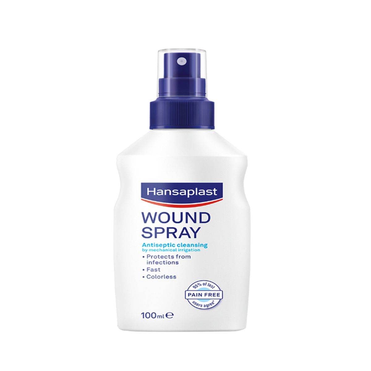 Hansaplast Wound Spray 100ml is an antiseptic wound cleanser designed for gentle and effective cleaning of minor wounds. Its alcohol-free, colorless formula ensures pain-free application without stinging or staining. Ideal for minor cuts, abrasions, and burns, it features a 360° spray head for easy application from any angle.