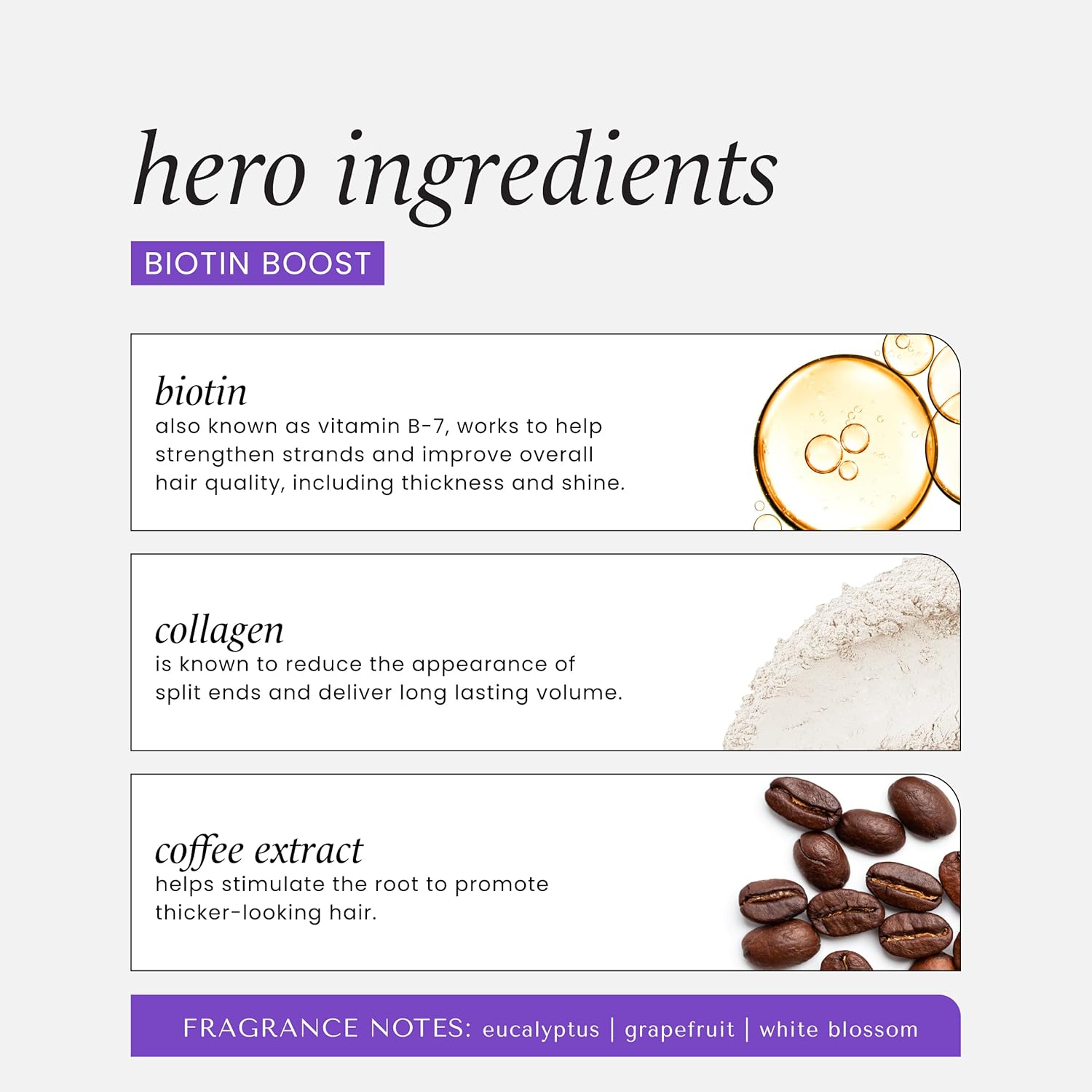 TRANSFORM - Fine, flat strands into fabulously fuller hair! This shampoo & conditioner work on three levels to help deliver volume-featuring biotin to help hair look thicker, collagen to fortify locks, and coffee to help boost strands. Go big or go home!