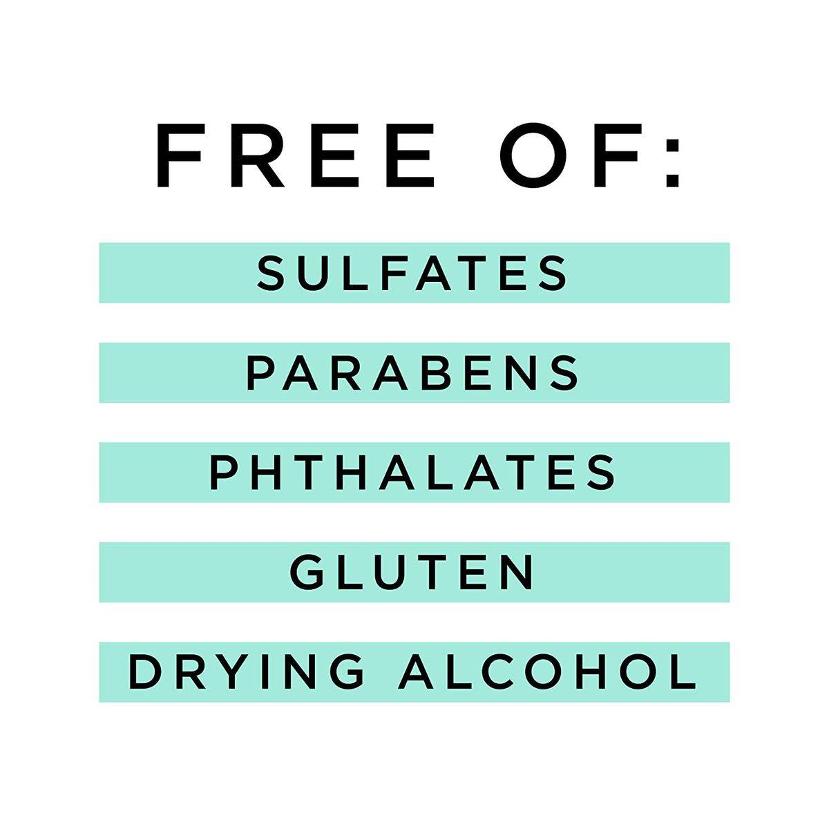 - Free of sulfates, parabens, phthalates, gluten, drying alcohol