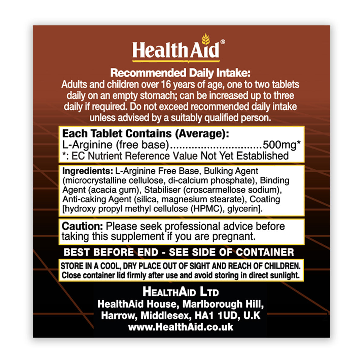 HealthAid L-Arginine 500mg tablets are designed to support cardiovascular health and enhance the immune system. Each tablet contains pure L-Arginine, an amino acid essential for hormone secretion and toxin removal. Ideal for maintaining normal blood pressure and promoting overall wellness.