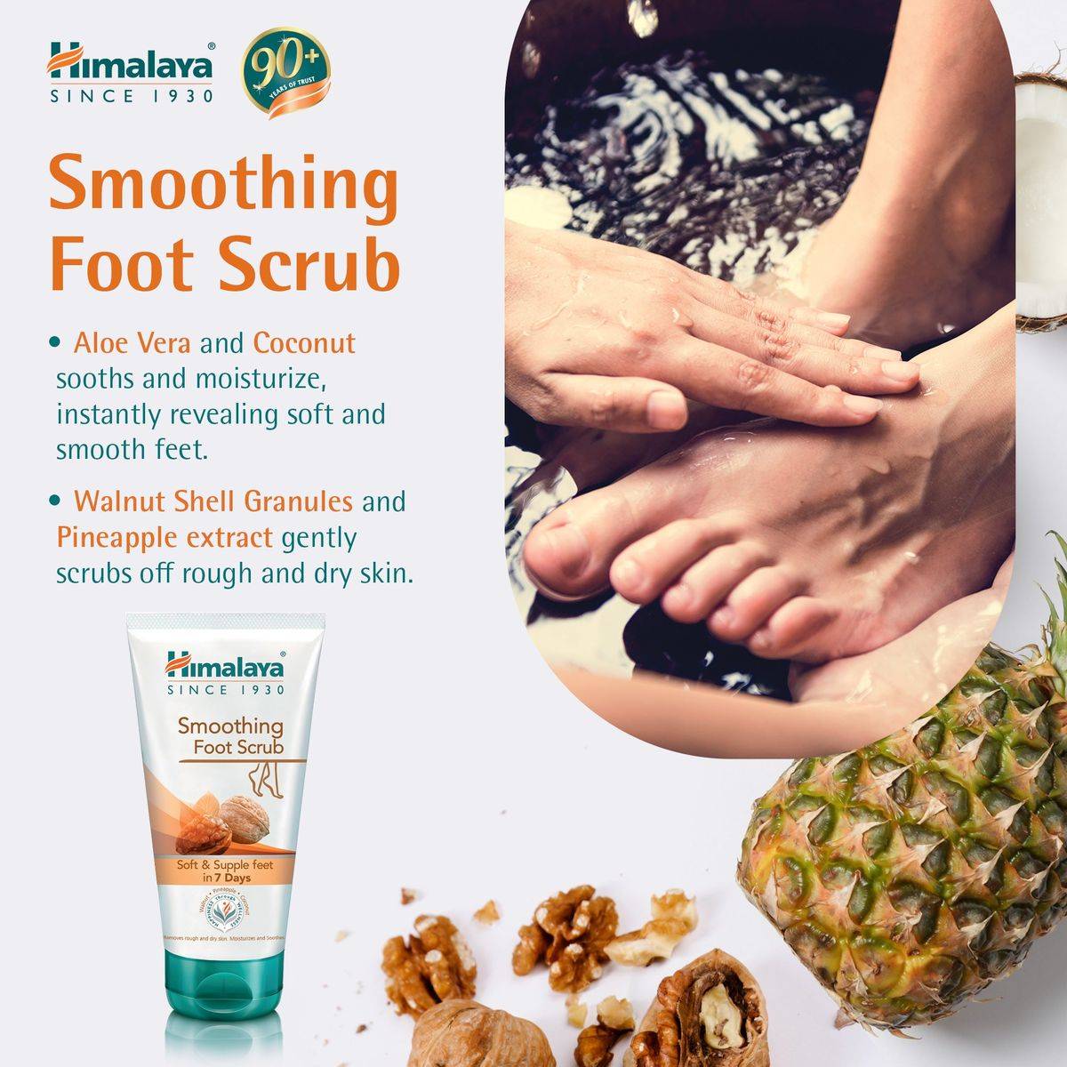 Himalaya Foot Scrub Smoothing 150ml is designed to exfoliate and moisturize for soft and smooth feet. Enriched with walnut shell granules and pineapple extract, it gently scrubs off rough and dry skin. Aloe Vera and coconut soothe and moisturize, instantly revealing soft and smooth feet. Ideal for daily use to maintain healthy foot skin.