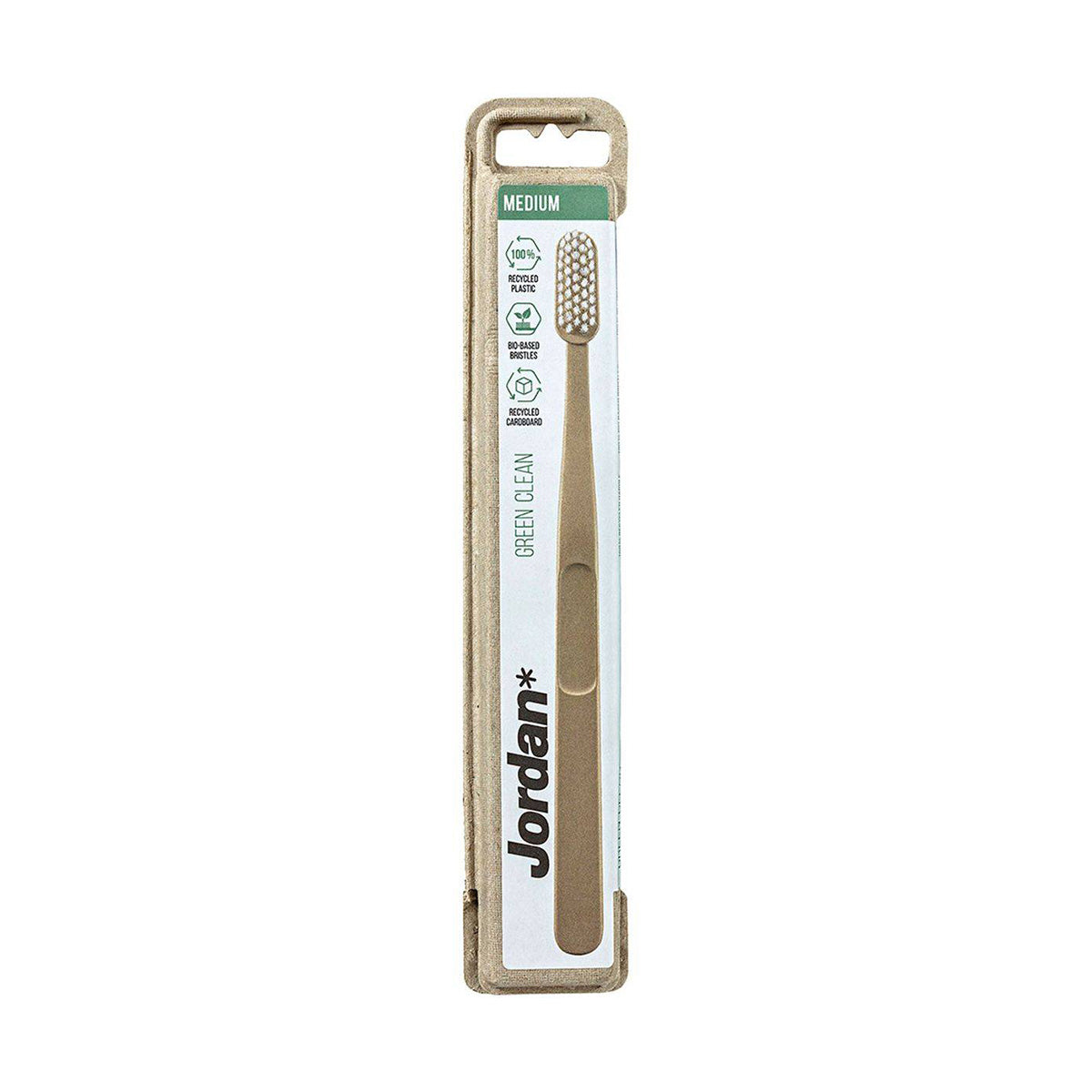 The Jordan Toothbrush Green Clean Medium is designed for eco-conscious dental care. Featuring a handle made from 100% recycled plastic and bio-based bristles, it combines sustainability with effective cleaning. Suitable for ages 5 and above, this toothbrush is a step towards a greener lifestyle.