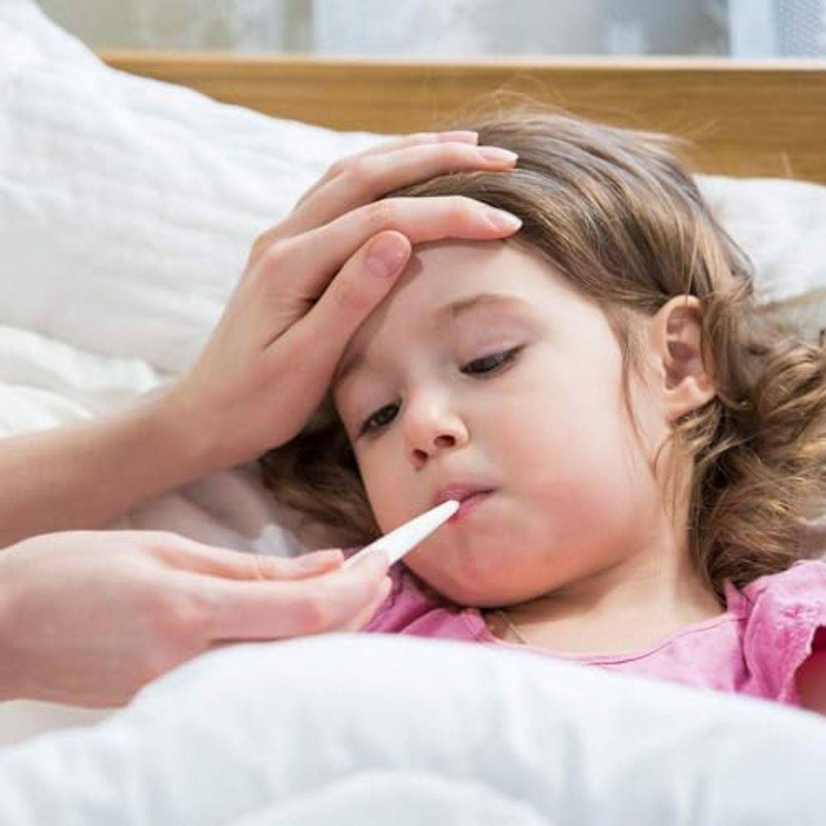 Peel off the protective film and apply the adhesive side to the child's forehead.
