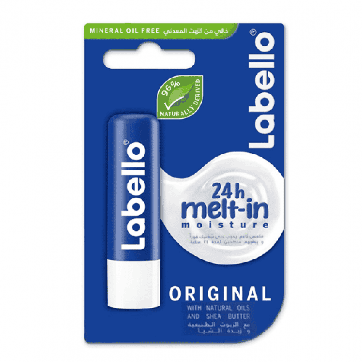 Labello Lip Balm Original provides 24-hour moisture with natural oils and Shea Butter. Ethically sourced ingredients ensure effective lip care. Ideal for daily use to protect and nourish lips.