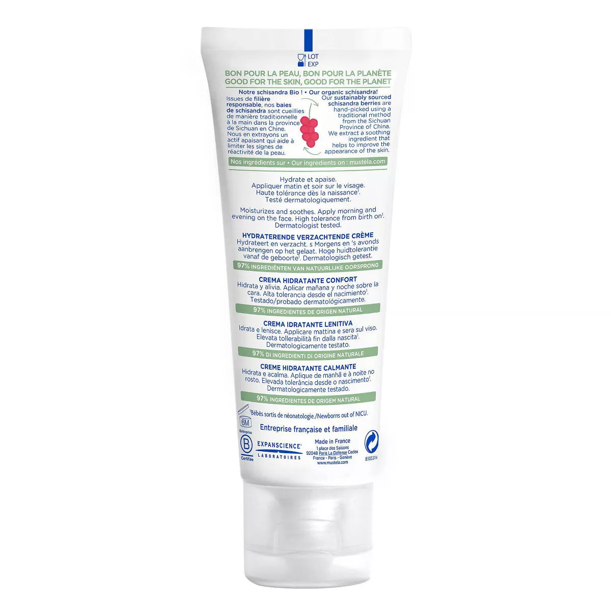 Mustela Baby Soothing Moisturizing Face Cream is designed for very sensitive skin, featuring natural avocado and schizandra berry extracts. Fragrance-free and hypoallergenic, it provides immediate and long-lasting moisture, suitable for newborns.
