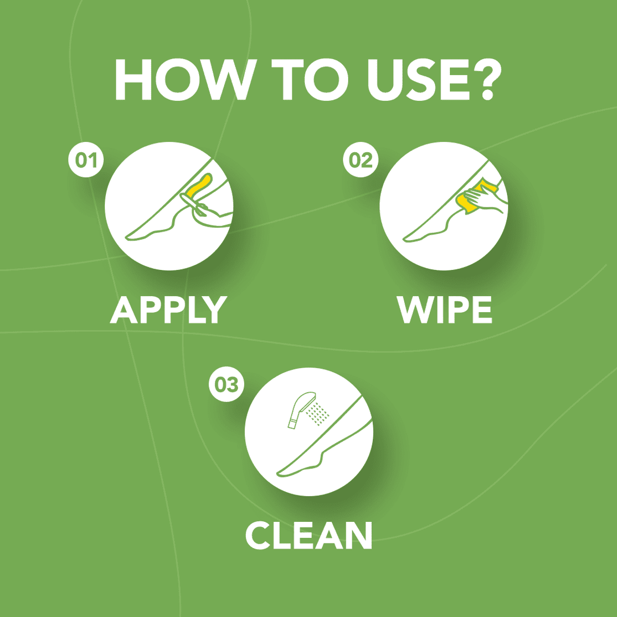 Apply a thick, even layer on the skin without rubbing it in. Wait 5-6 minutes, test a small area. If hair doesn't come away easily, leave on for a few more minutes (no more than 10 minutes in total). Rinse thoroughly with warm water using a washcloth and pat dry.