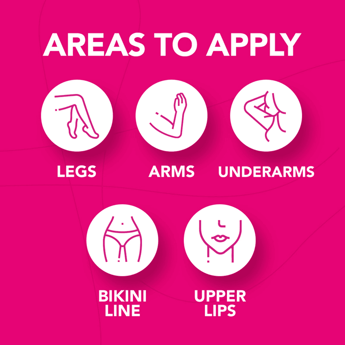 Apply a thick, even layer on the skin, covering the hair to be removed. Do not rub in. After 5-6 minutes, test a small area. If the hair does not come away easily, leave on for a few more minutes but not more than 10 minutes in total. Shower off with lukewarm water using a wet cloth if required and pat skin dry with a soft towel. Do not rub or use soap.