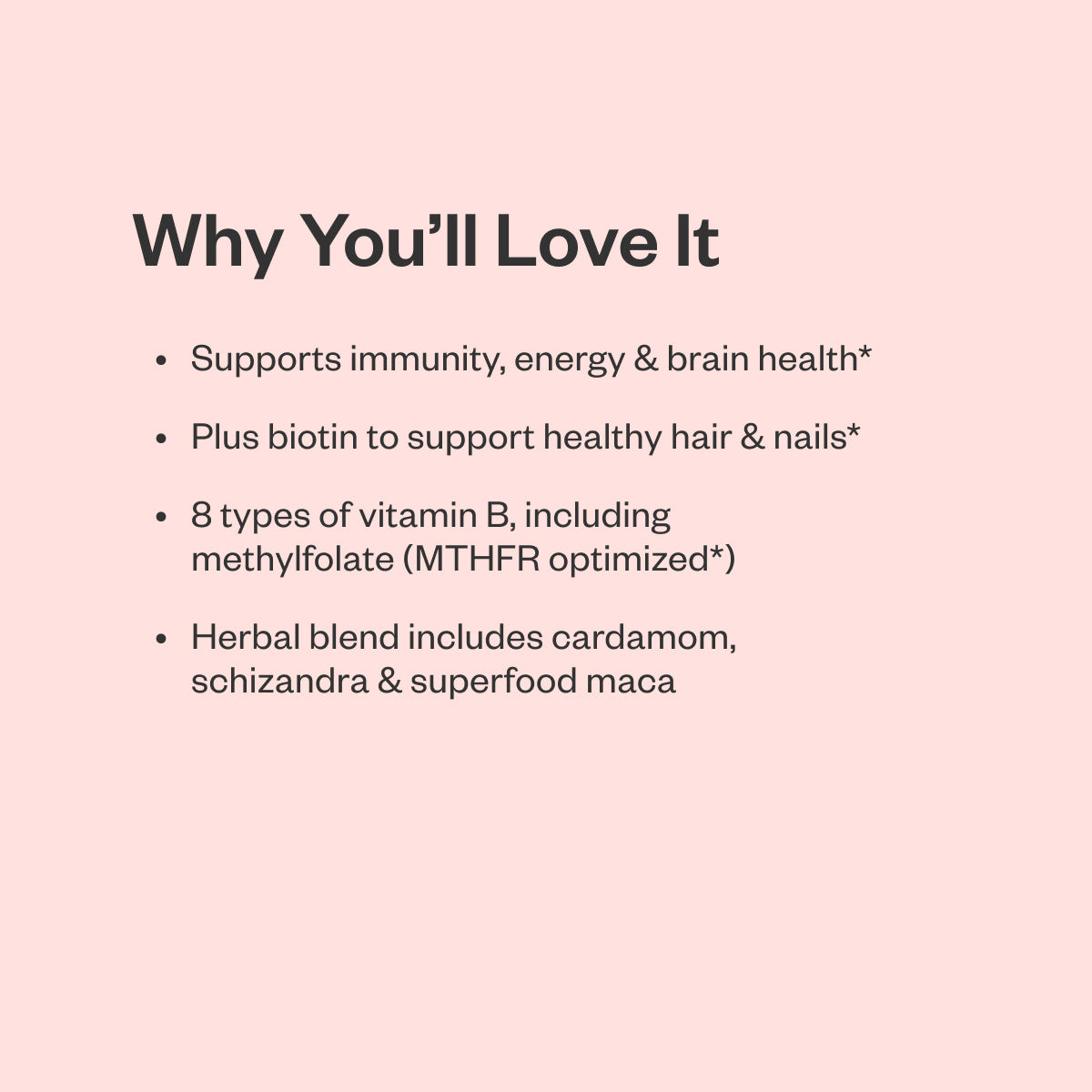 - Includes 8 types of vitamin B