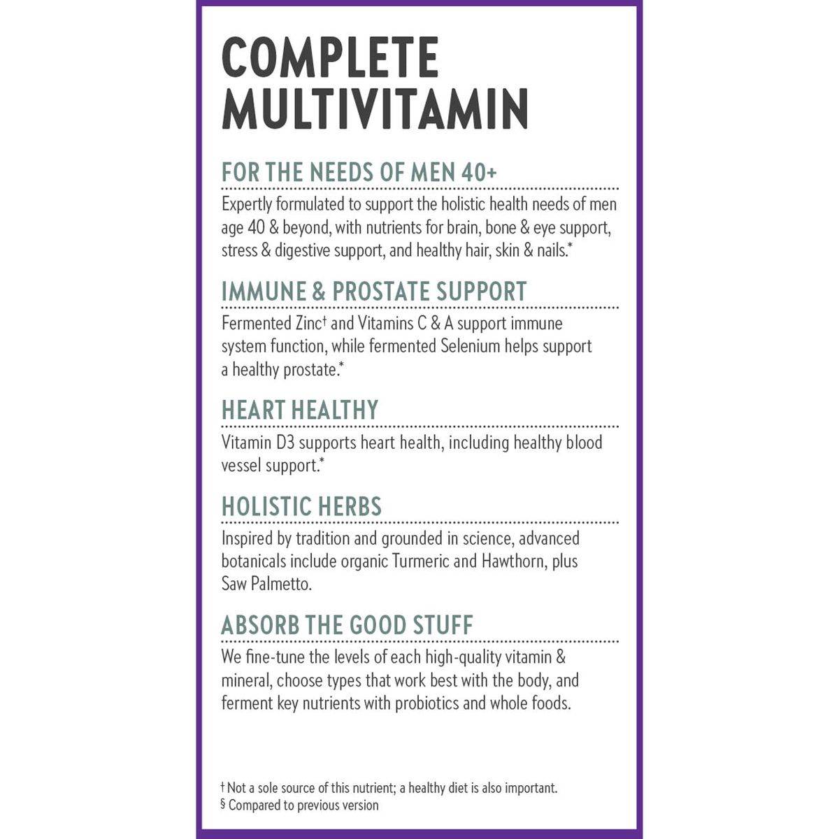 Optimized multivitamin for men over 40, supporting stress, energy, brain, heart, immune, and prostate health with fermented nutrients.