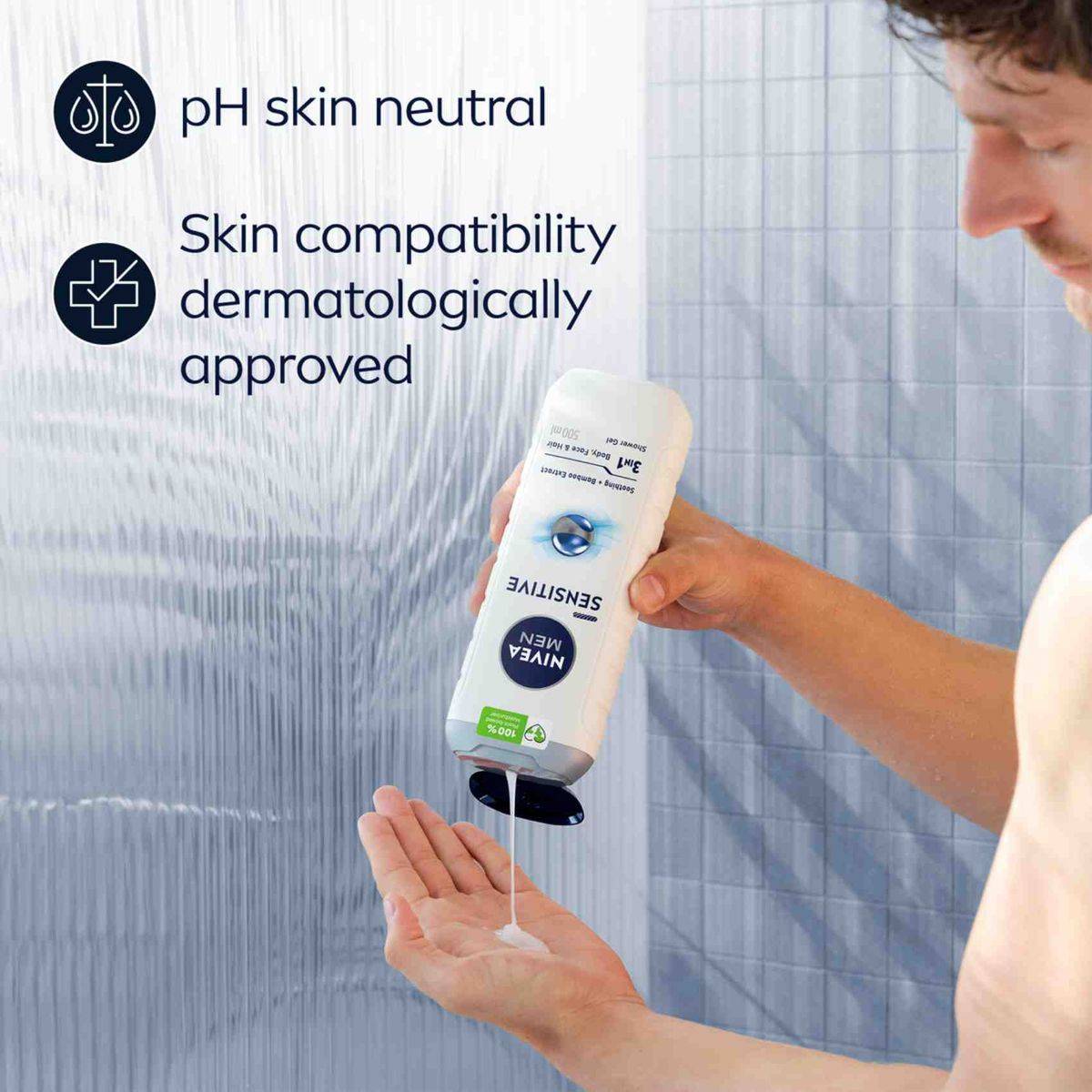 Nivea Men Sensitive Shower Gel is designed for body, face, and hair. Enriched with bamboo extract, it gently cleanses and provides a soothing experience.