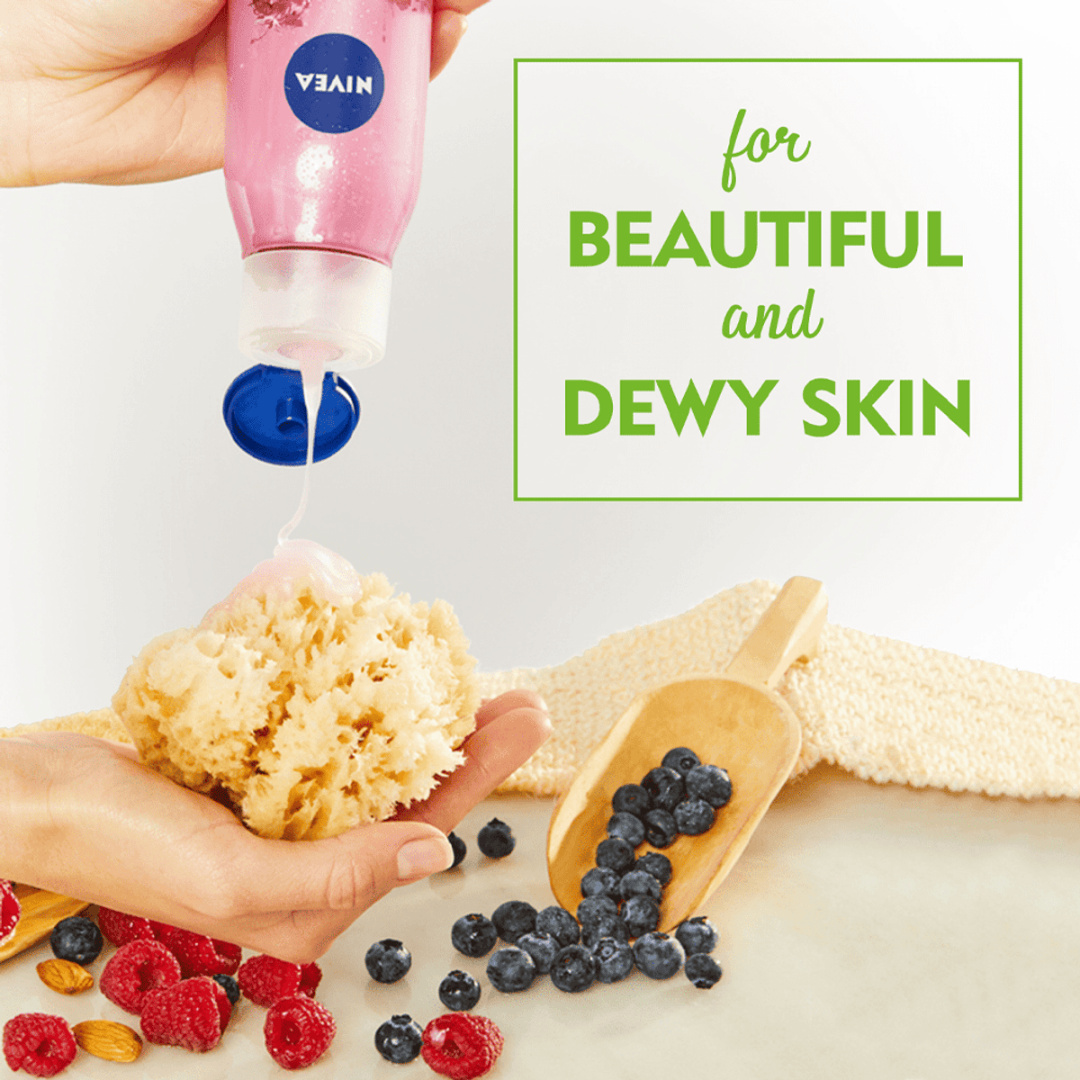 NIVEA Fresh Blends Raspberry Shower Gel offers a refreshing shower experience with raspberry, blueberry, and almond milk. Its biodegradable formula is kind to the skin and the planet, providing beautiful and dewy skin.