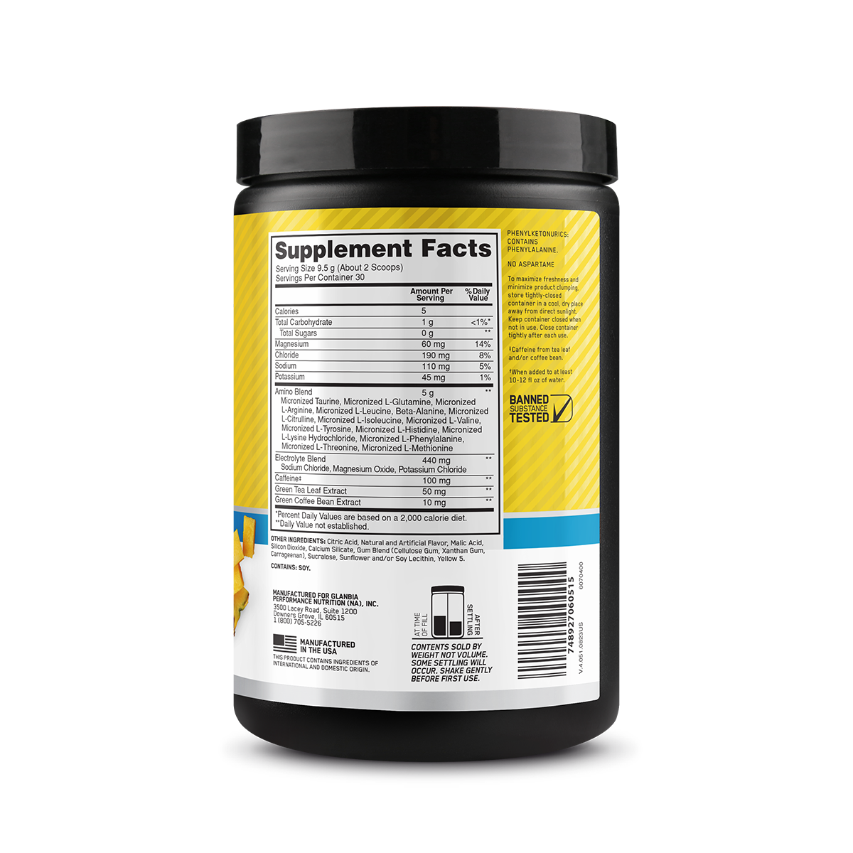 Start fast and finish strong in the gym or on the field. Essential Amino.O. Energy Plus Electrolytes Sparkling Hydration Drink offers a combination of 5 grams of Amino Acids to support muscle recovery, 100 mg of Caffeine from natural sources to support energy and focus, and electrolytes to support performance, endurance and active living.