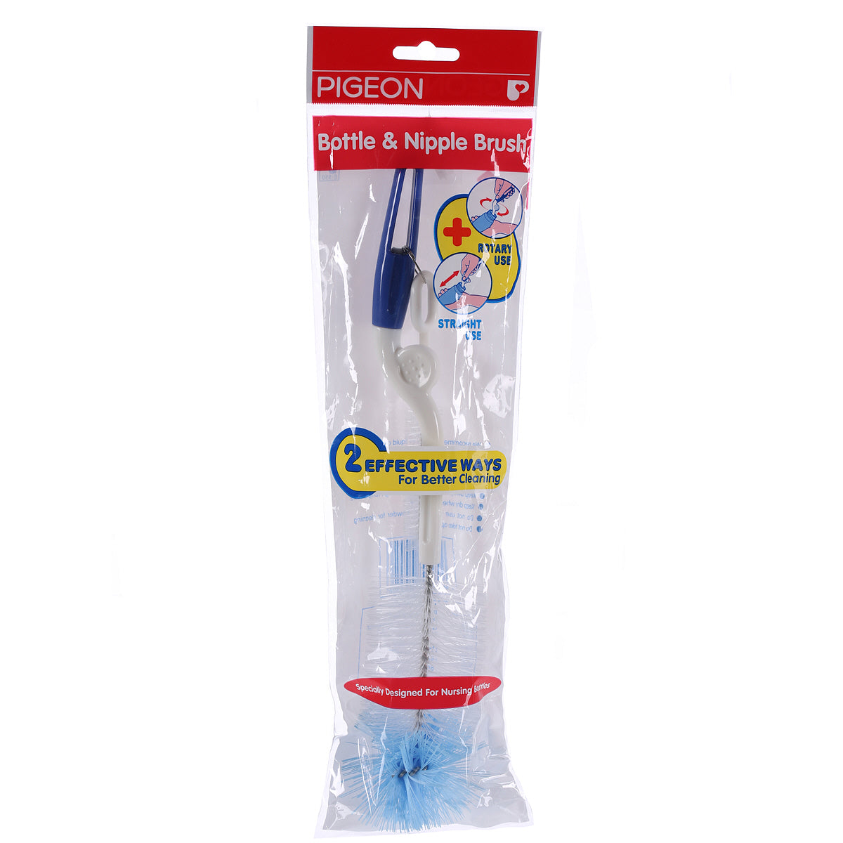 The Pigeon Bottle & Nipple Brush is designed for effective cleaning of nursing bottles. Featuring a 360° rotary handle, it cleans without scratching and fits all bottle sizes. BPA and BPS free, it ensures safe cleaning for your baby's essentials.