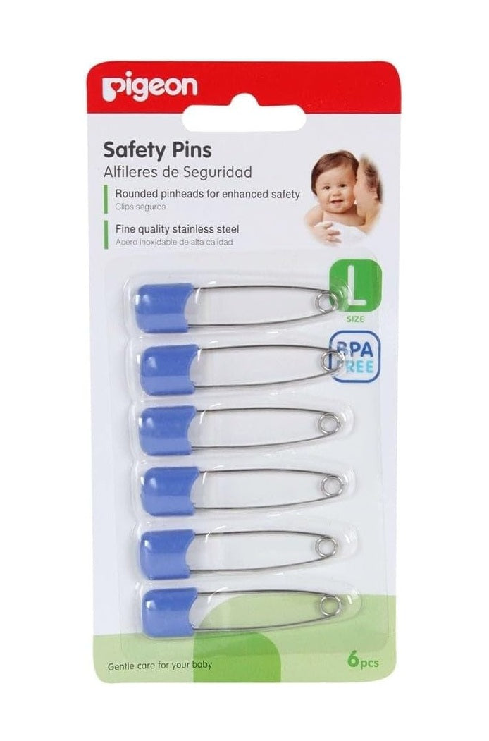 Pigeon Safety Pins are made from durable stainless steel, featuring a secure locking mechanism and smooth tips to protect delicate fabrics and skin. Ideal for fastening baby clothes and nappies.