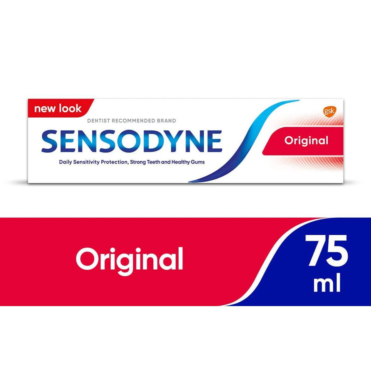 Sensodyne Toothpaste Original 75ml is designed for sensitive teeth, offering relief from sensitivity and promoting oral health. It features NovaMin technology for protection and repair, with a mint flavor for freshness.