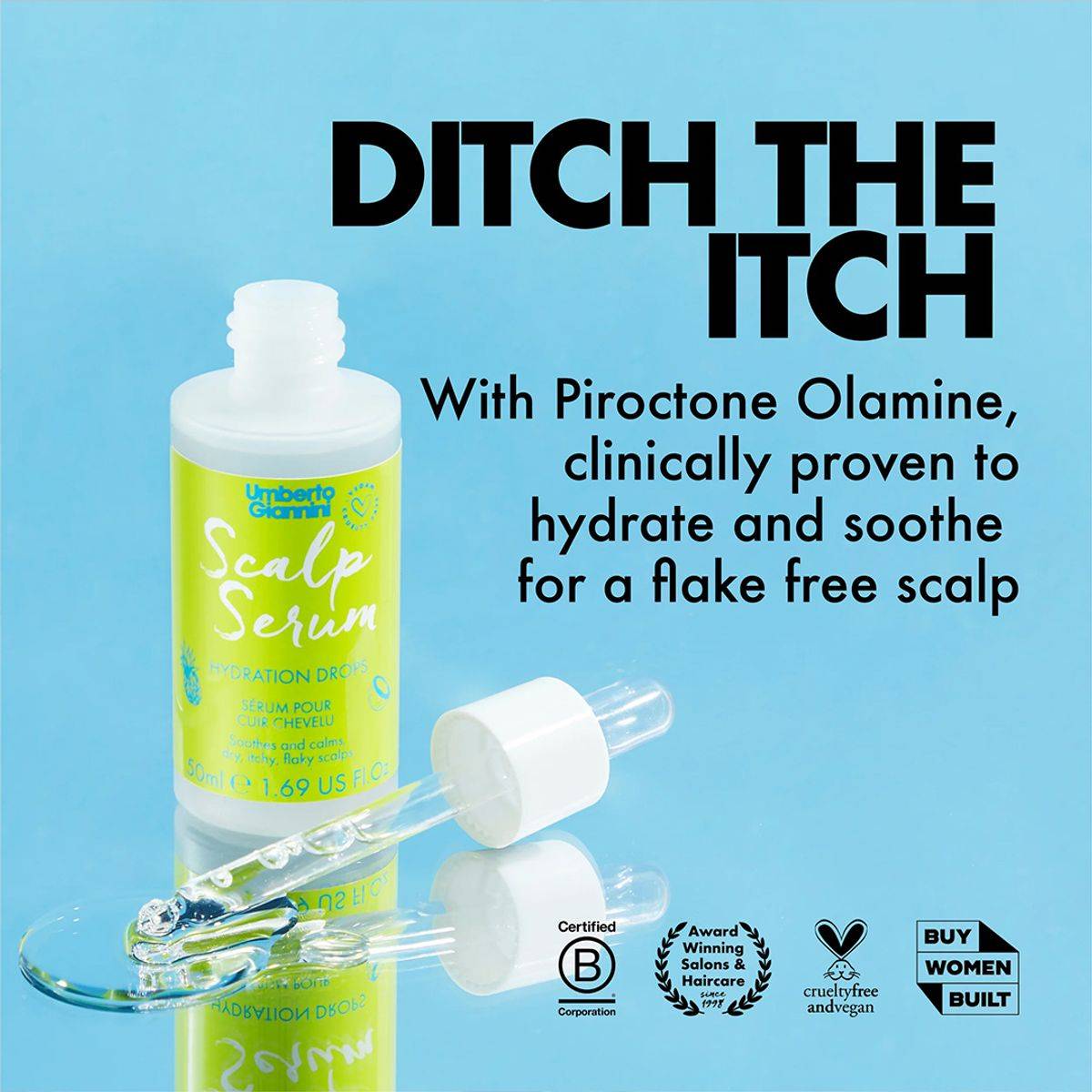 Umberto Giannini Scalp Hydration Serum is a nourishing treatment for dry, itchy scalps. Infused with Piroctone Olamine, it hydrates and soothes, promoting a flake-free scalp. Ideal for sensitive scalps, it supports healthy hair growth.