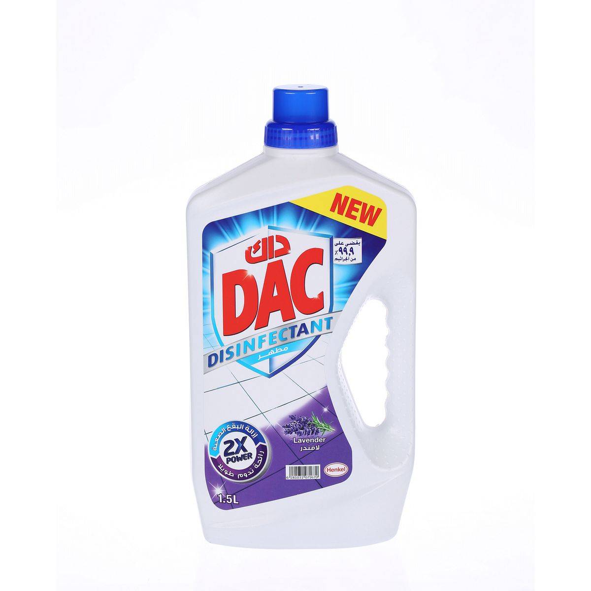 Dac Disinfectant Lavender 1.5L is a powerful cleaning solution that kills 99.9% of germs and bacteria. It effectively removes tough grime and stains while leaving a refreshing lavender scent. Ideal for use on floors, woodwork, surfaces, and equipment, this disinfectant ensures a hygienic environment for your home or workplace.