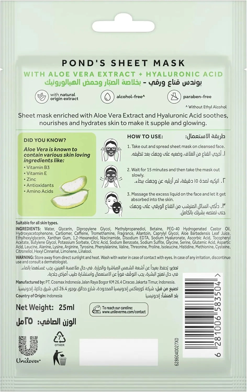- Ponds Healthy Hydration Sheet Mask Aloe Vera 25ml