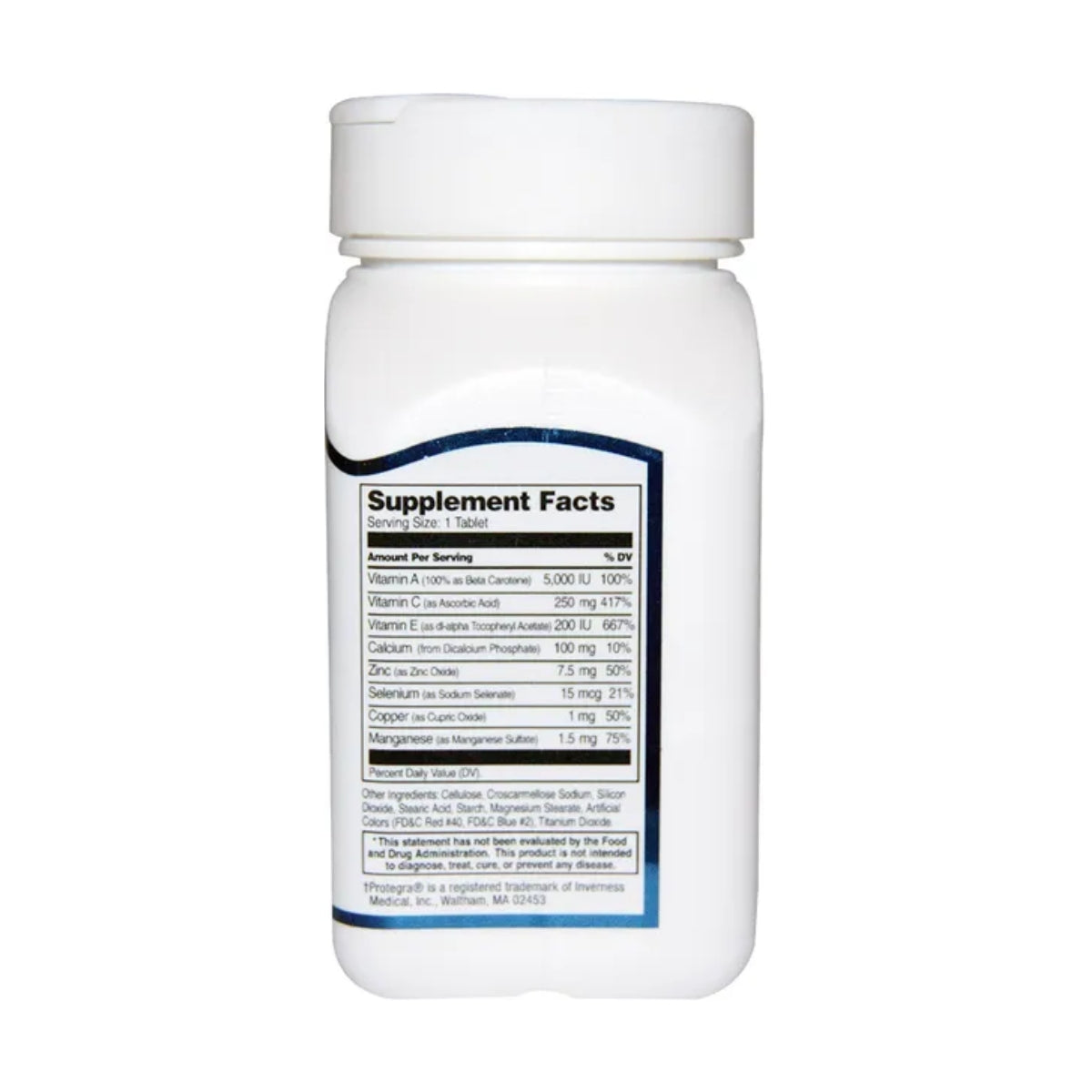 Vitamin A, Vitamin C, Vitamin E. Other ingredients (proprietary blend, likely include cellulose, stearic acid, croscarmellose sodium, silica).