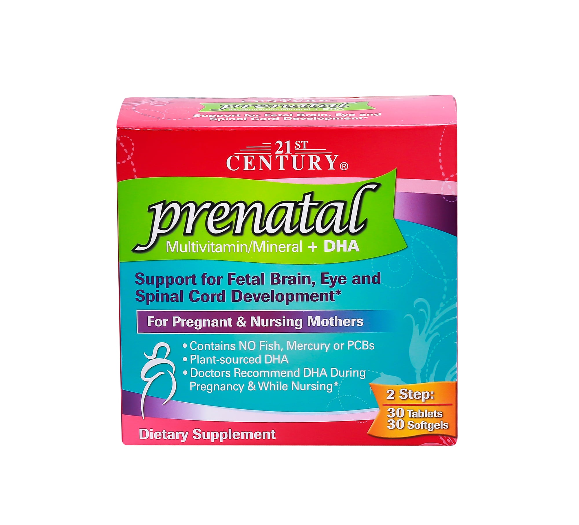 Clinical studies have shown that taking 200mg of DHA during pregnancy and while nursing a child can provide significant support in the healthy development of brain and eye function. In fact, many doctors specifically recommend that pregnant women and nursing mothers take a multivitamin and consume 200mg of DHA per day to help their baby develop during these important times. The unique DHA in 21st Century Prenatal Multivitamin + DHA is a patented, ultra-pure and completely fish-free DHA to support your baby’s healthy brain and eye development. • Helps Support Healthy Fetal Brain, Eye & Spinal Column Development • Contains no Fish, Mercury or PCB’s • Plant sourced DHA • Doctors Recommend DHA During Pregnancy and While Nursing.