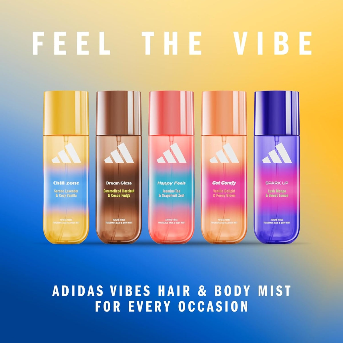 - Mist the vibe all over your hair and body and boost your mood with the adidas fragrance mists