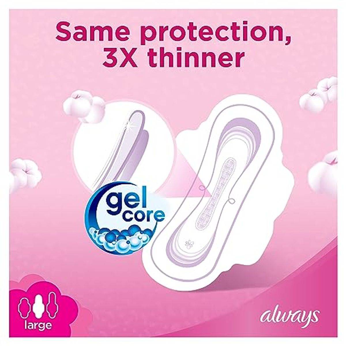 Always Cotton Ultra Thin Large pads offer superior comfort and protection. Featuring a soft top sheet with lotion to prevent skin irritation and an extra-absorbent gel core to lock in liquid. Ideal for daily use during menstruation.