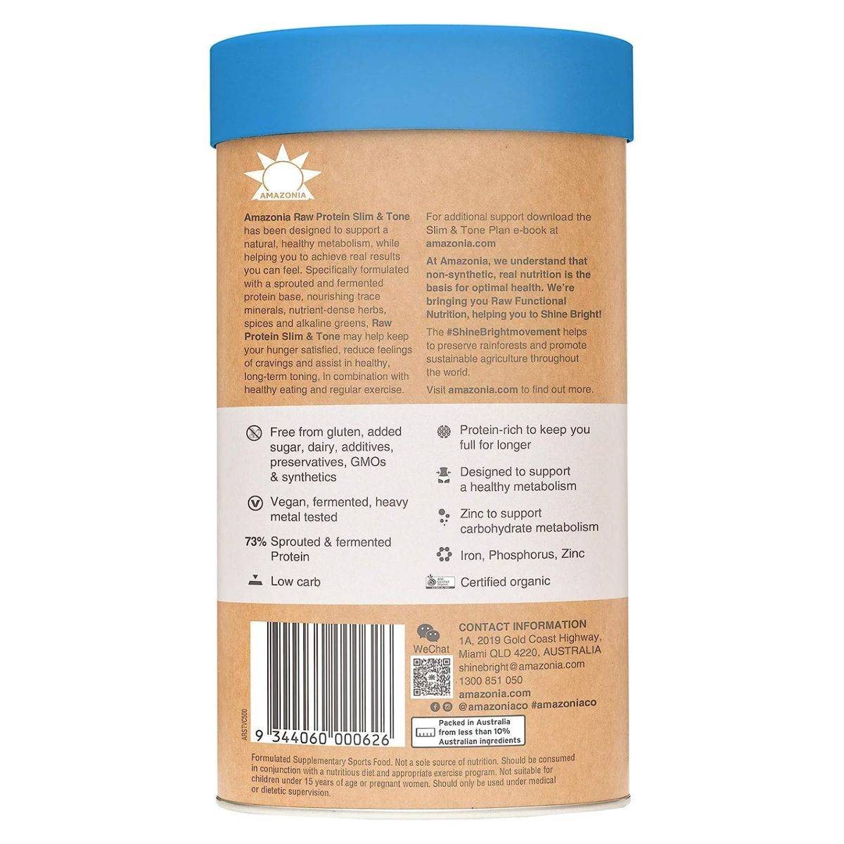 Amazonia RAW Slim & Tone is a plant-based protein designed to support metabolism and reduce cravings. Made with sprouted and fermented protein, it includes trace minerals, herbs, and spices. Ideal for those seeking long-term toning and a healthy lifestyle.