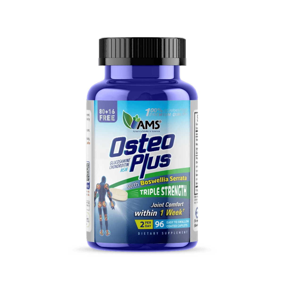 AMS Osteo Plus with Boswellia Serrata is a dietary supplement designed to promote joint comfort and improve mobility. Its potent formula supports cartilage health and renews cellular components, enhancing joint flexibility and relieving discomfort.