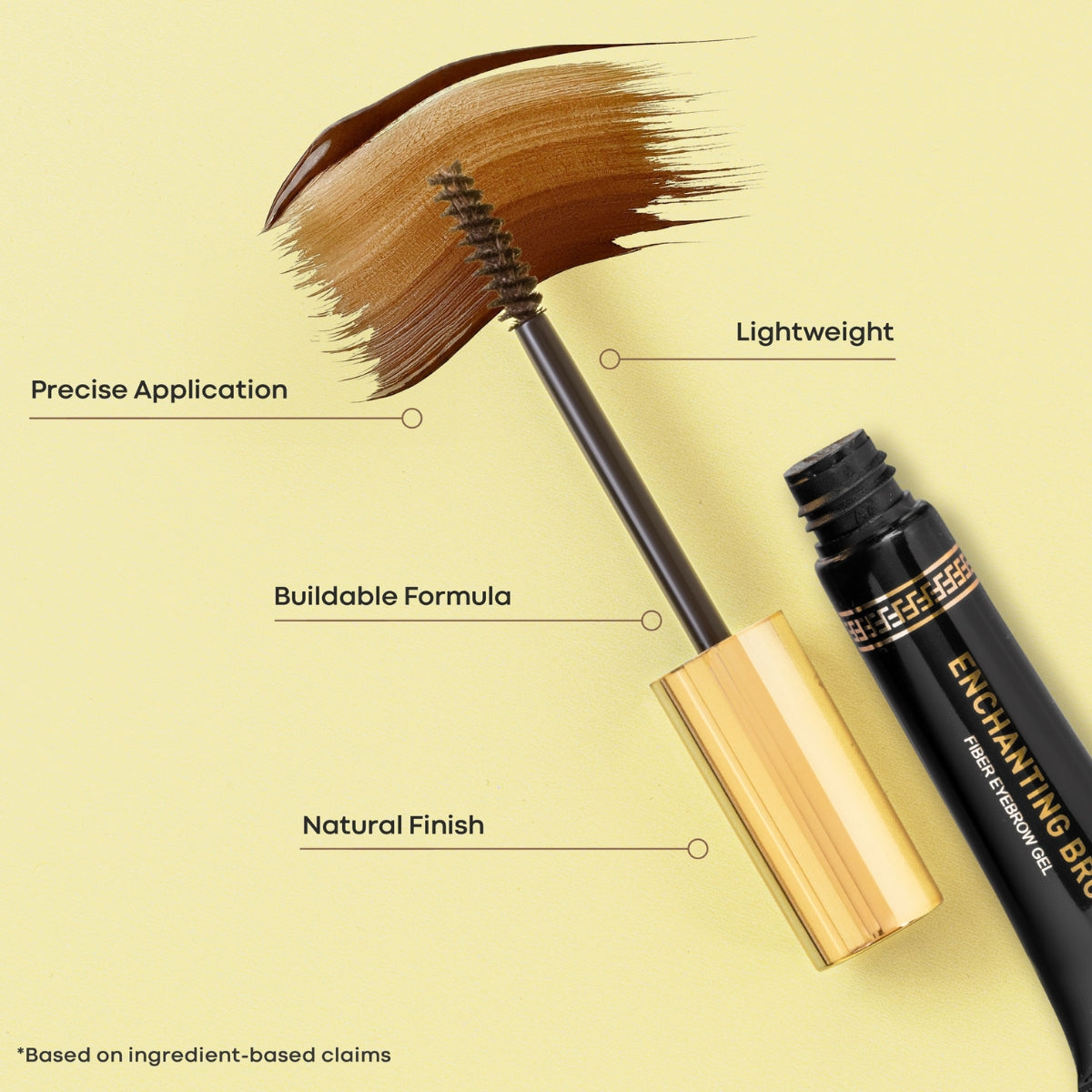 Brow Gel: Brush the wand through brows in short, upward strokes, following the direction of hair growth. Apply lightly for definition or layer for added volume and hold.