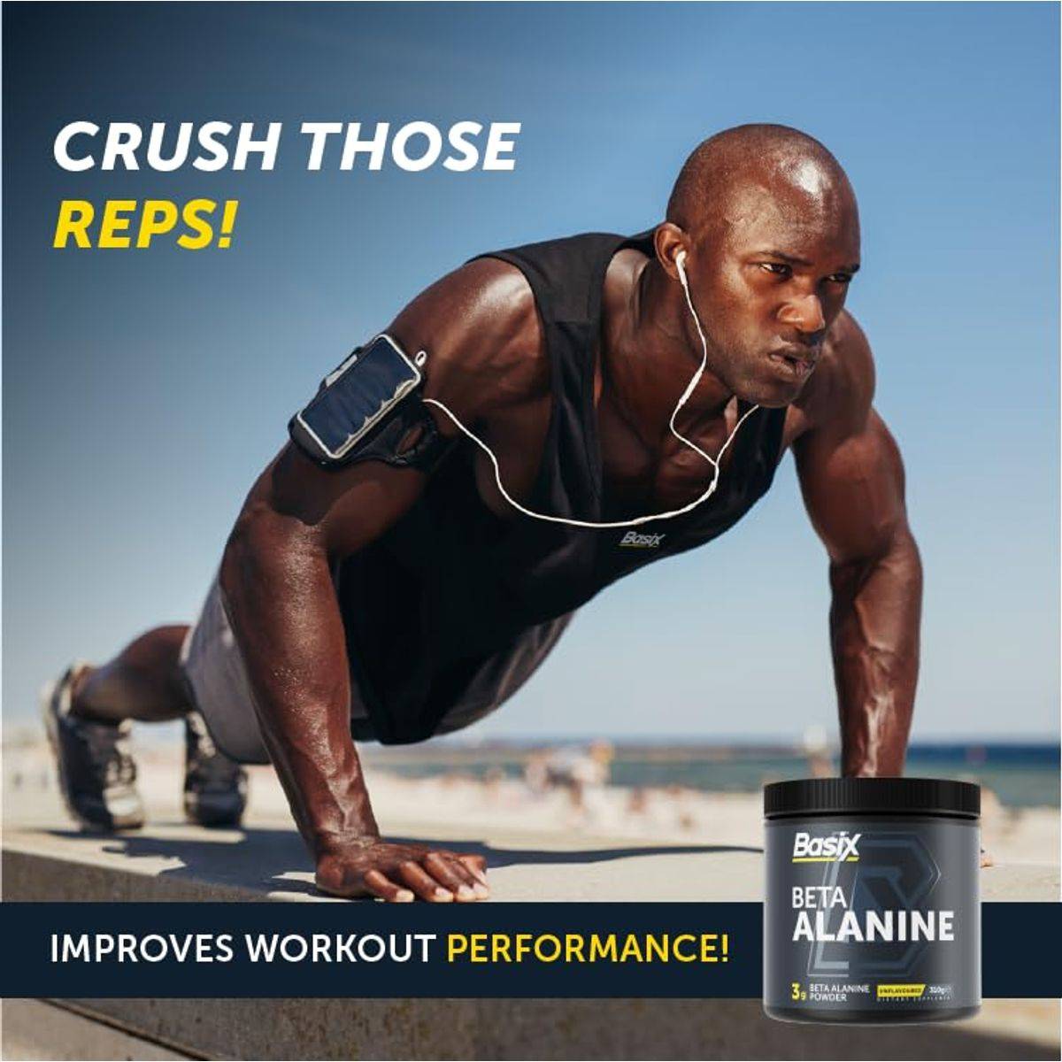Basix Beta Alanine Powder is designed to enhance workout performance by boosting endurance and reducing muscle fatigue. Ideal for athletes seeking to push their limits, this supplement supports sustained training power and faster recovery. Unflavored for easy mixing with any beverage, it contains 3g of Beta Alanine per serving.