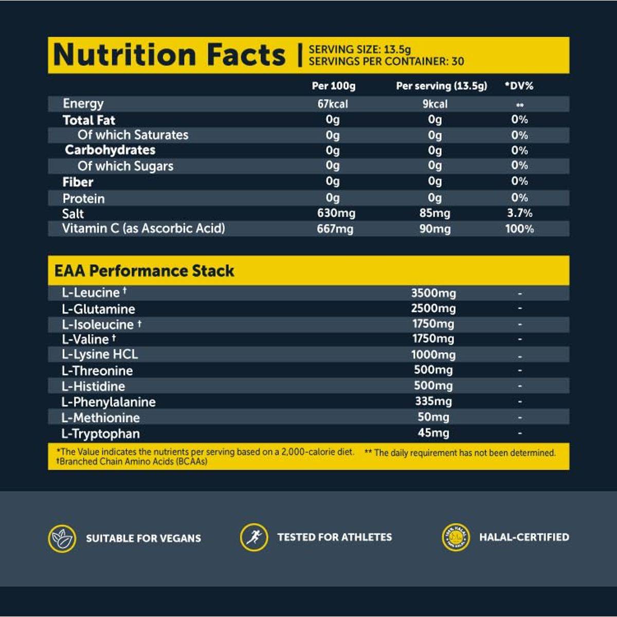 Basix Complete 10 Vimtonic is a premium supplement powder delivering essential amino acids and glutamine to support muscle growth and recovery. With a refreshing Vimtonic flavor, it is ideal for athletes and fitness enthusiasts seeking to enhance performance and reduce fatigue. Each serving provides 9.4g of EAAs, including 7g of BCAAs, and 2.5g of glutamine, ensuring optimal protein synthesis and muscle repair. Halal-certified and tested for athletes, it is suitable for vegans and free from sugar, carbs, and fat.